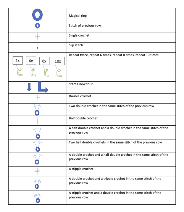 De legende vind je hier en een uitleg vind je snel in deze post, hoe je een hartje haakt.